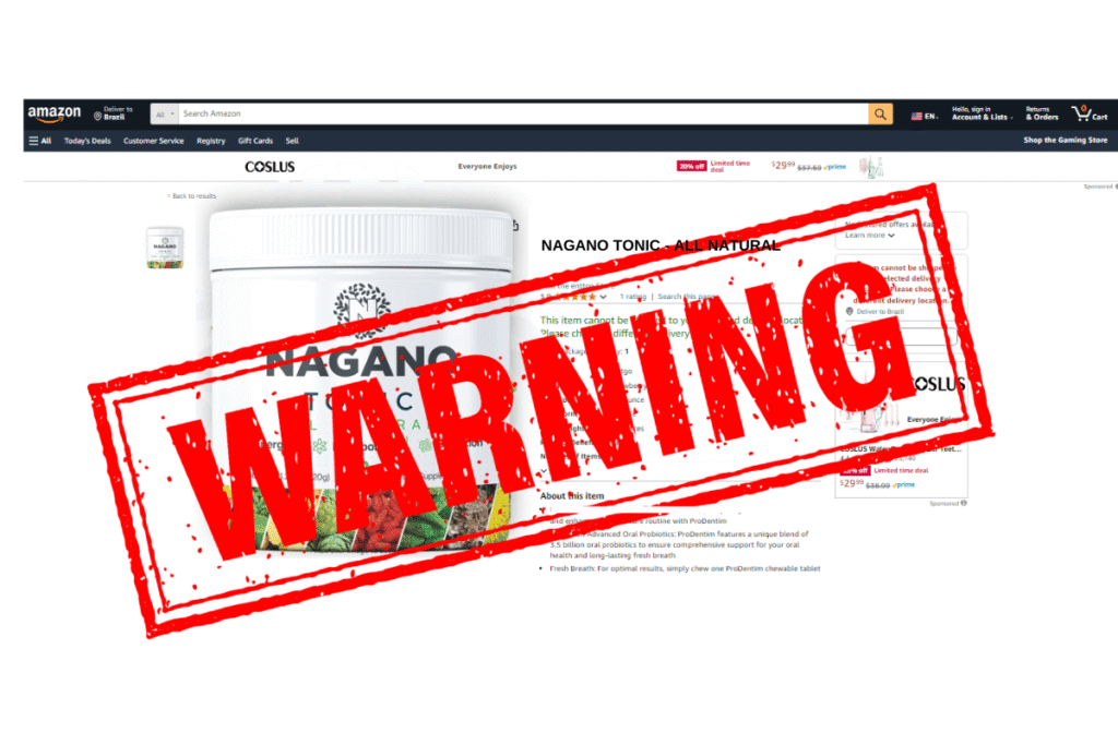We strongly advise against ordering Nagano Tonic from Amazon, Walmart, eBay or Walgreens, as these sources often sell fake versions with entirely different ingredients, which can be very dangerous.
